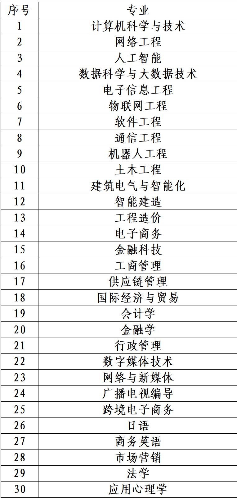 招生专业如下: